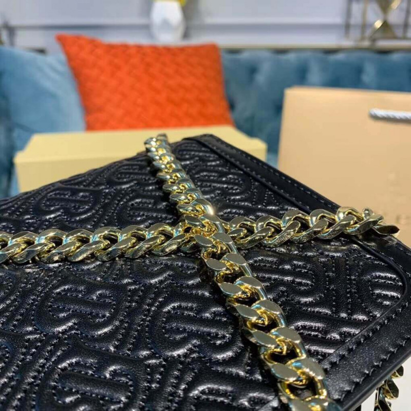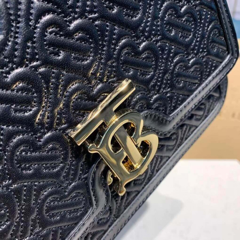 Un sac structuré en peau d’agneau monogramme matelassé avec un fermoir monogramme Thomas Burberry. Portez-le sur l’épaule ou ajustez la sangle à style comme un crossbody.