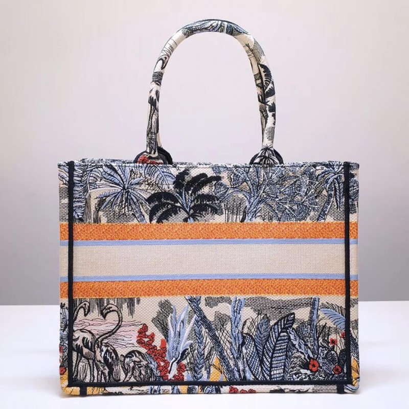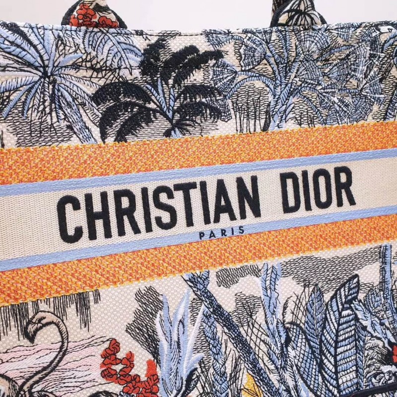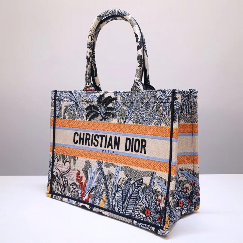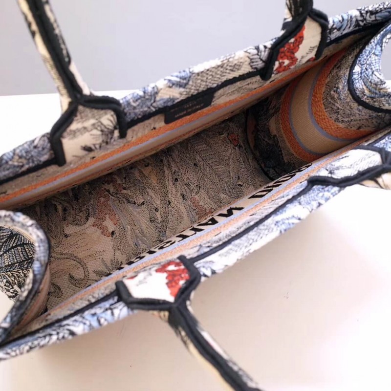 Dior Book Tote Sac dans Canvas brodé avec un motif Toile de Jouy de Jouy Tropicalia.
