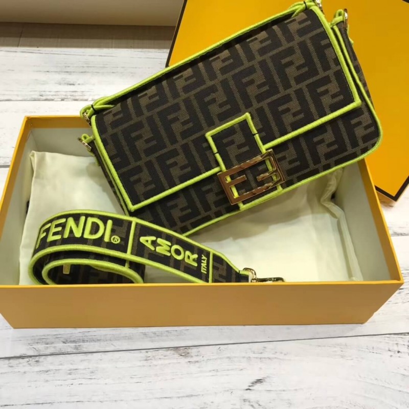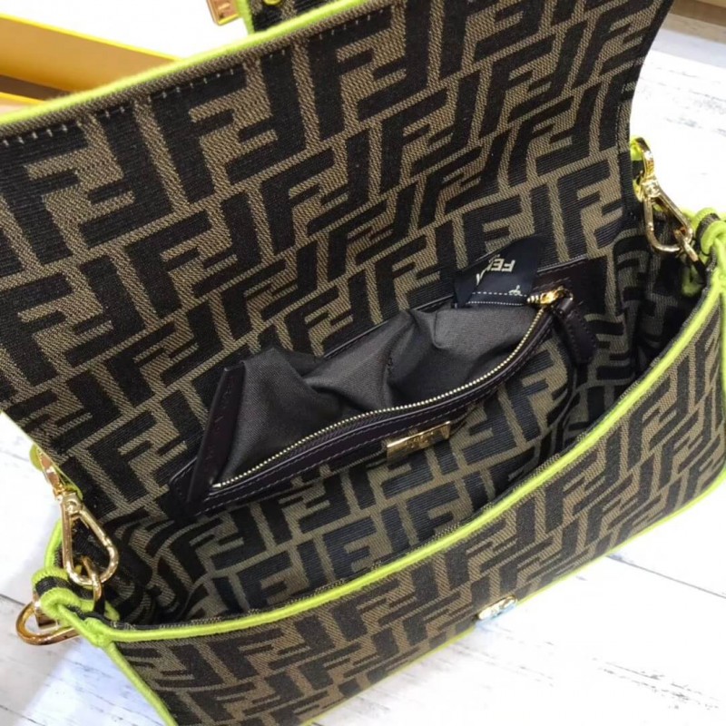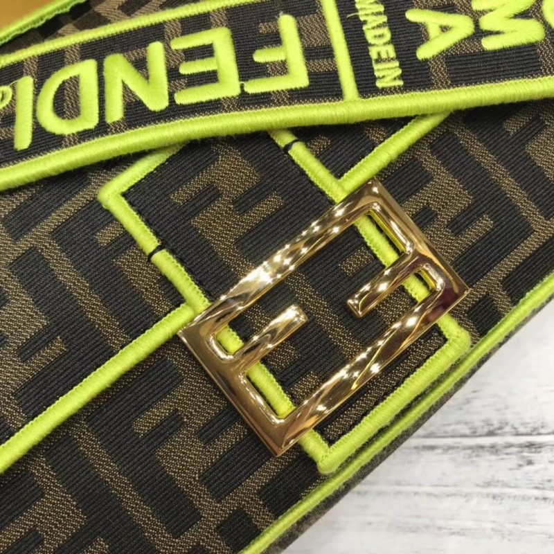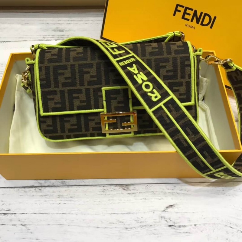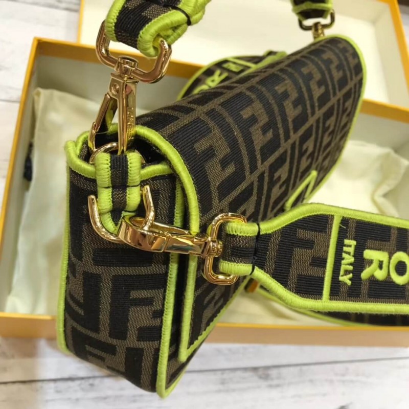 Sac à bandoulière emblématique avec rabat et bouton magnétique. doublure avec poche zip. STRAPE AMOVABLE SAUTHERS AVEC JACQUARD FF MOTIF. fini avec des profils brodés cousus en satin dans des tons furescents fuchsia. STAPLE SUPPOSSIBLE CÉSUMÉ avec motif d’étiquette Fendi dans les mêmes tons. Fin d’or. Résines, cuir 100% veaux,