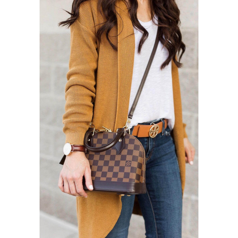 Le sac à main Alma BB retrace son pedigree à l’original Art Deco, introduit en 1934. Les détails de la signature confèrent une élégance intemporelle à ce modèle fabriqué à partir de toile graphique Damier Ebene: Remarquez le cadenas et les touches d’or, les poignées Twin Toron et la cloche de clé en cuir chic. Équipé d’une sangle amovible, ce charmant petit sac est parfait pour l’usure du corps transversal.