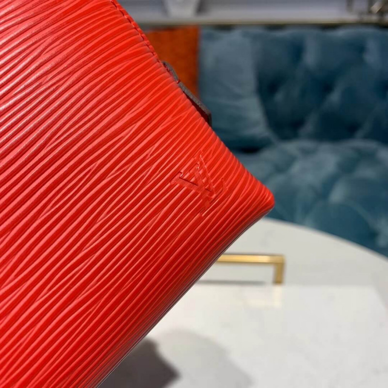 Cette poche cosmétique compacte en cuir EPI se glisse facilement dans un sac à main ou une valise. Sa forme ronde et sa base plate facilitent l’accès aux petits produits.
