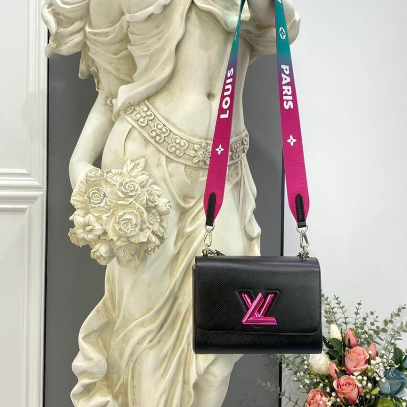Le sac emblématique Twist MM prend une sensation avec espièglerie avec sa large sangle détachable aux couleurs de dégradé, signé Louis Vuitton. Avec le LV Twist-Lock emblématique dans une couleur correspondant à celui de la sangle, cette torsion n’est rien sinon accrocheuse. Une poignée supérieure amovible permet le transport à la main.