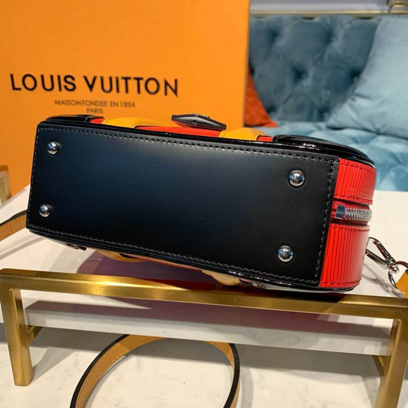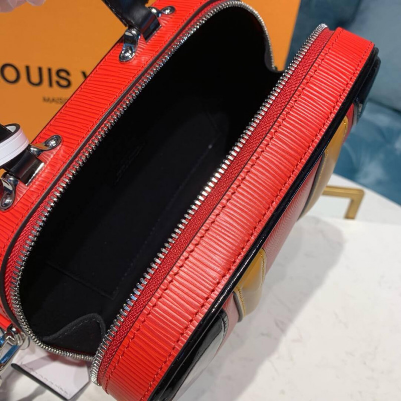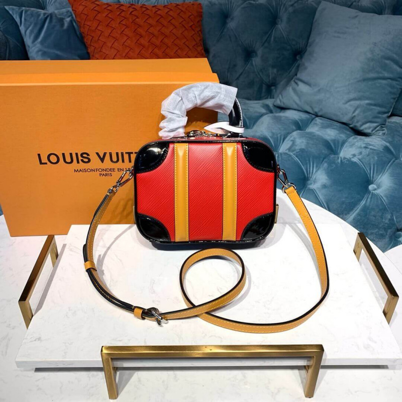 Une version compacte du sac PM Valisette créé par Nicolas Ghesquiere pour le spectacle de printemps-été 2019, le sac à main Valisette BB inspiré du voyage est disponible en cuir EPI grainé avec une garniture en termes de veau lisse. Il y a une poignée rigide pour le transport à la main ainsi qu’une sangle amovible pour l’usure des épaules ou du corps transversal.