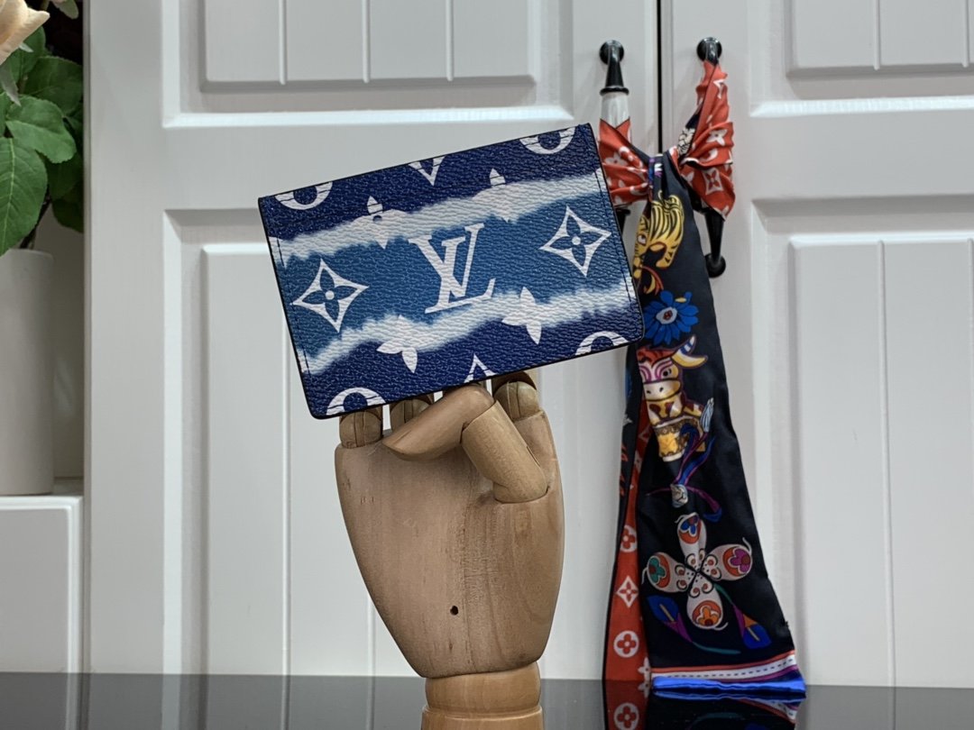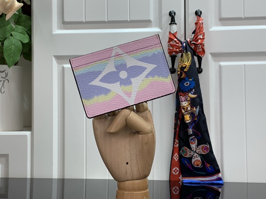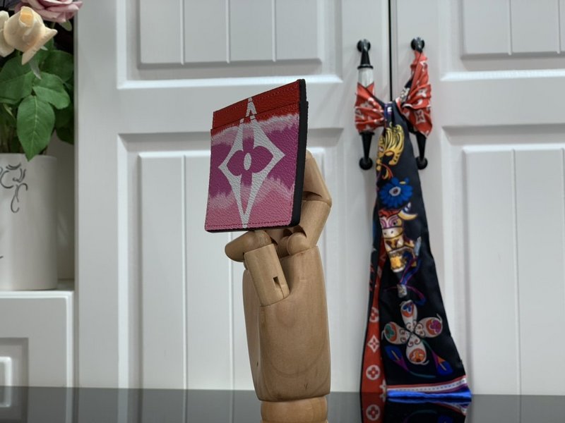 Cette édition spéciale du titulaire de la carte fait partie de la collection d’été 2020 LV Escale d’accessoires et de maroquinerie. Monogramme Giant Canvas est imprimé avec un effet de tie-dye dans les nuances de rose et de rouge, qui a été inspiré par la technique japonaise traditionnelle Shibori. Cet accessoire chic a de l’espace pour trois cartes.