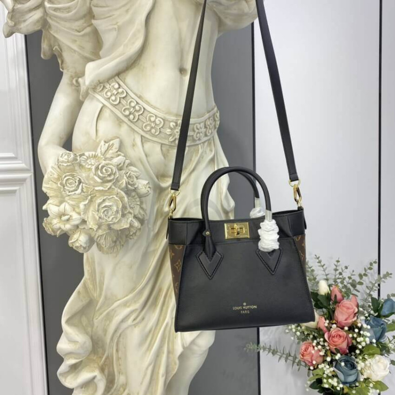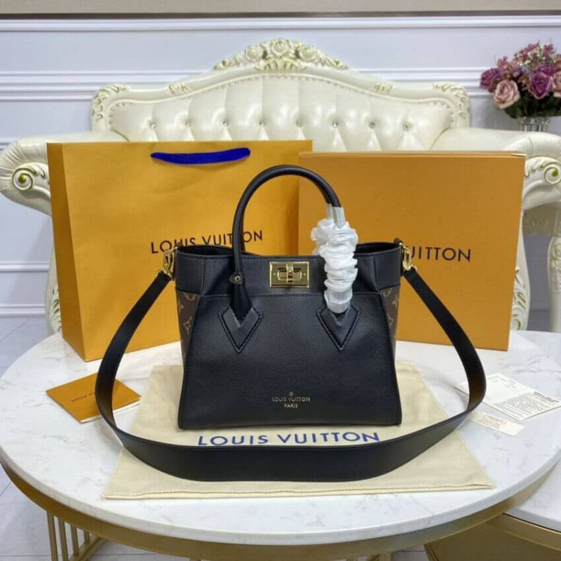 Le PM à mon côté est un sac fourre-tout compact à base de cuir de veau doux avec des panneaux latéraux en toile monogramme classique. Cet adorable sac de tous les jours possède une large sangle amovible pour les épaules tendance et les usures transversales ainsi que deux poignées supérieures pour le transport à main et au coude. Deux grandes poches extérieures donnent un accès facile à l’essentiel.