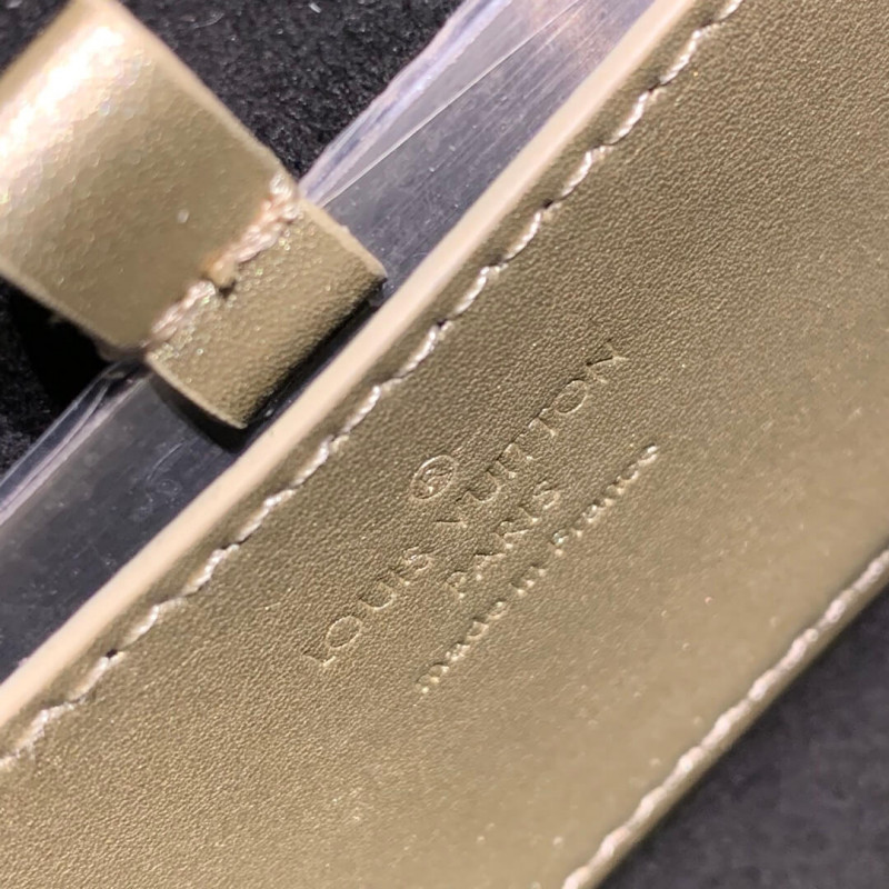 Cette édition exceptionnelle du sac à main emblématique Twist PM combine l’artisanat en cuir de Louis Vuitton avec des techniques de couture. Le cuir lisse est densément brodé de paillettes en argent et en tons dorées pour créer un motif monogramme chatoyant. Lorsque ce sac glamour attrape la lumière, l’effet est fascinant.