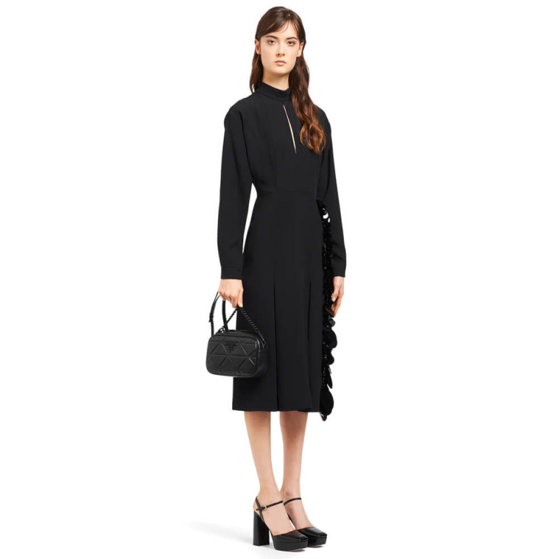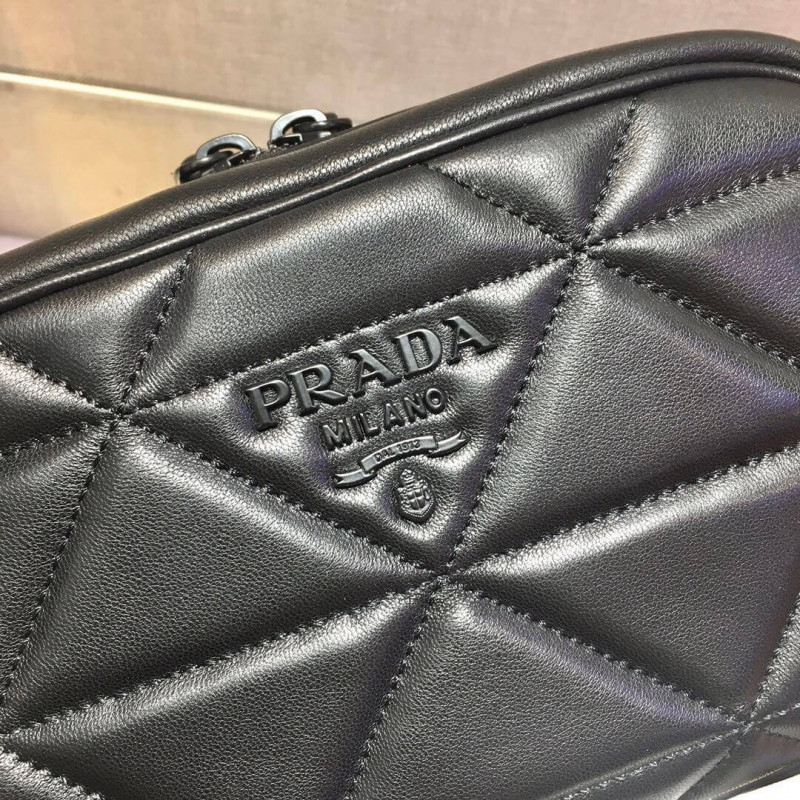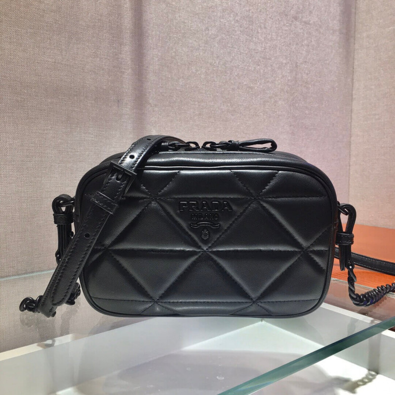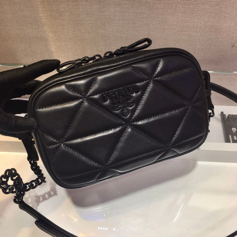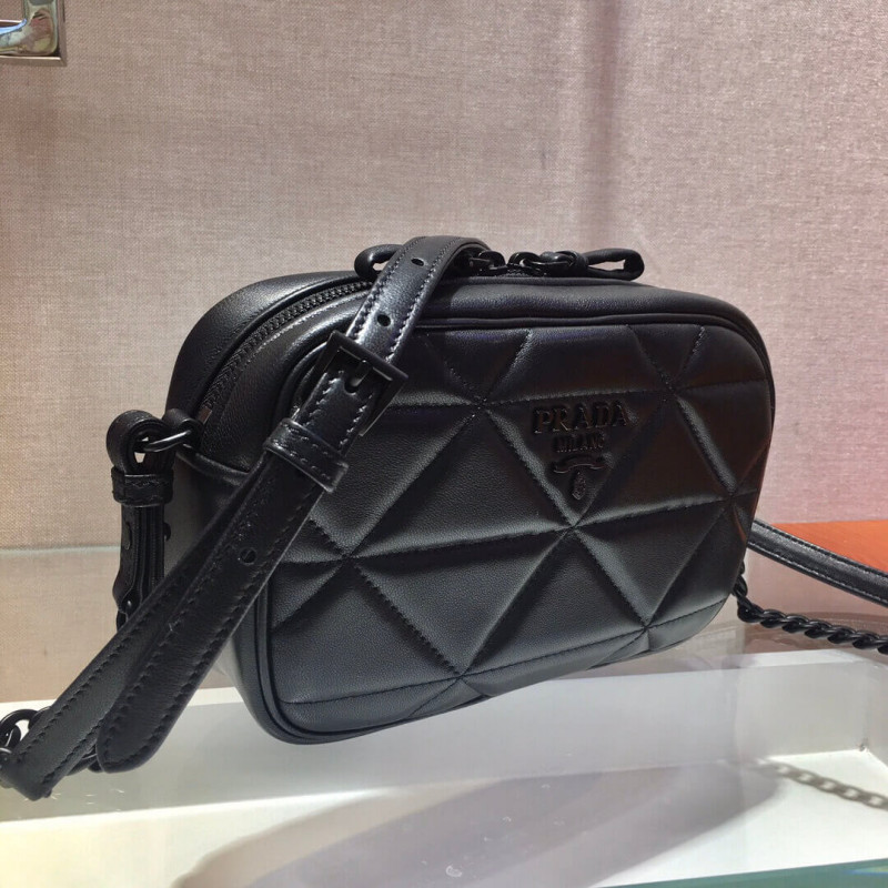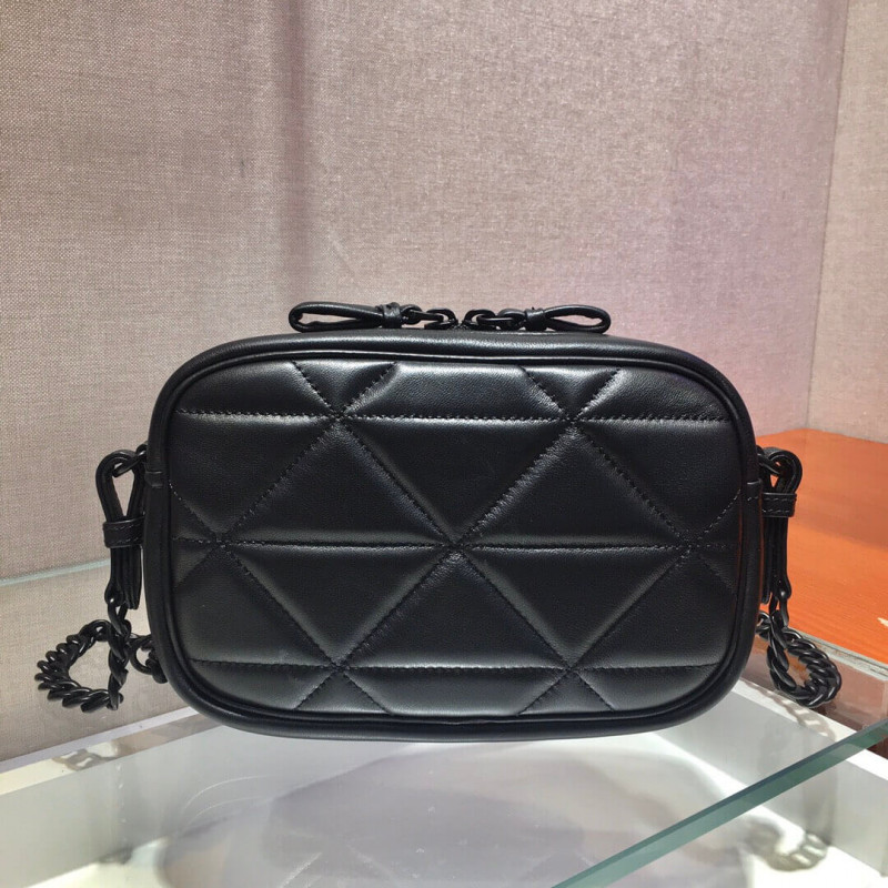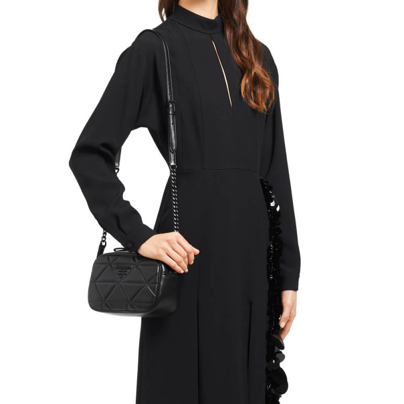 Le cuir Nappa matelassé ajoute une touche romantique à la conception de ce sac à bandoulière. L’accessoire est décoré d’un logo en métal.