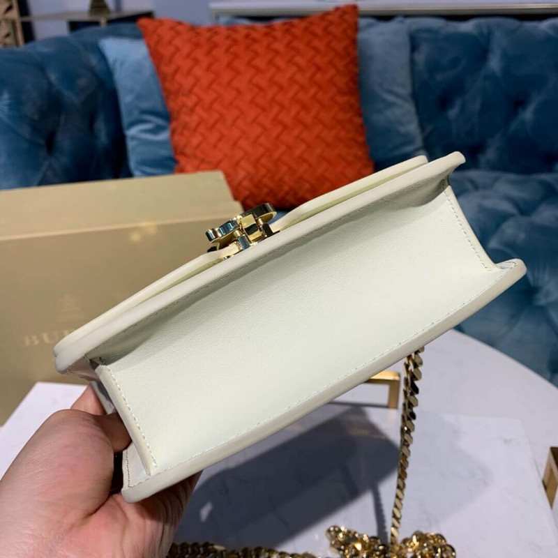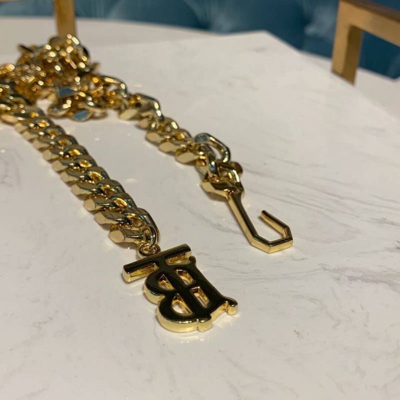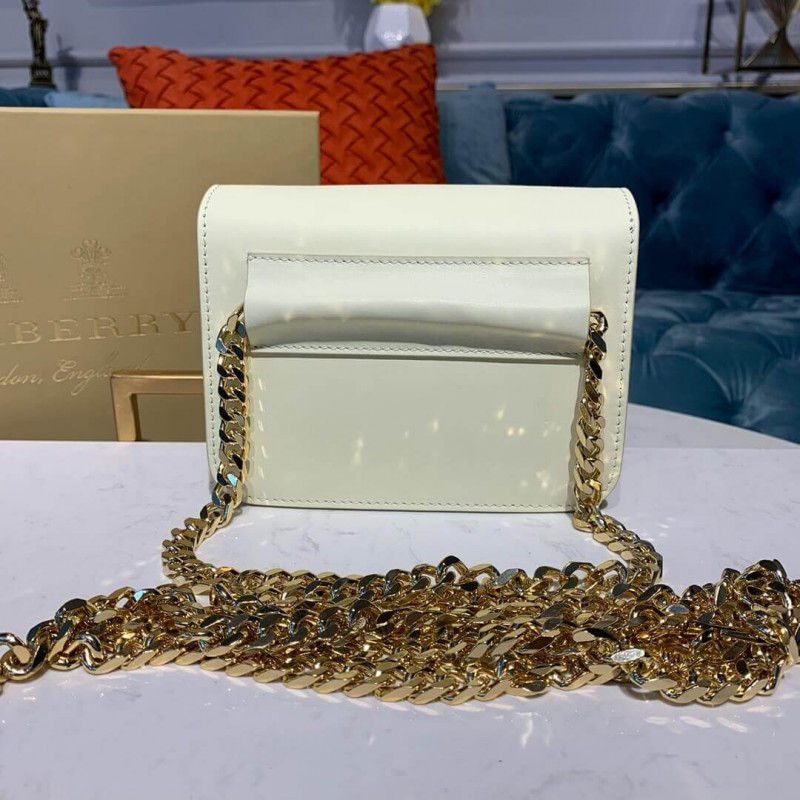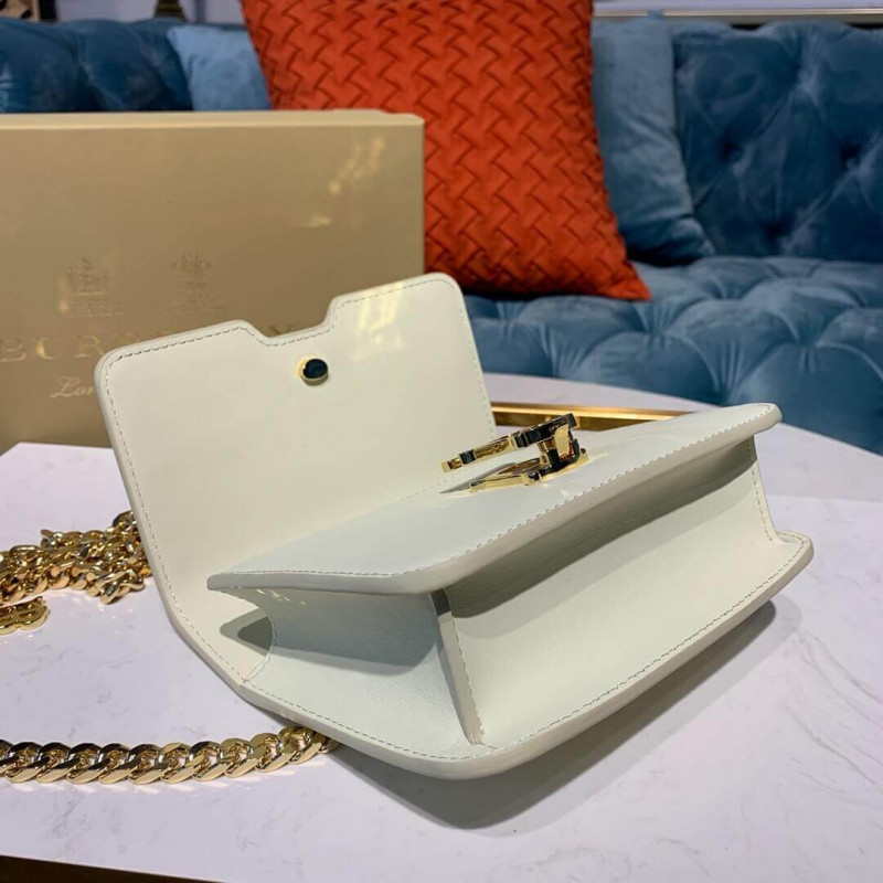 Un sac en cuir structuré avec un fermoir de monogramme Thomas Burberry et une sangle de chaîne pour porter autour de la taille. Détachez la sangle à transporter sous forme d’embrayage.